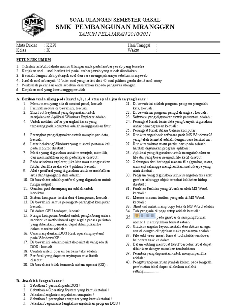 Soal Uts Kkpi Kelas Xi Semester 1 Beserta Jawabannya Ilmusosial Id